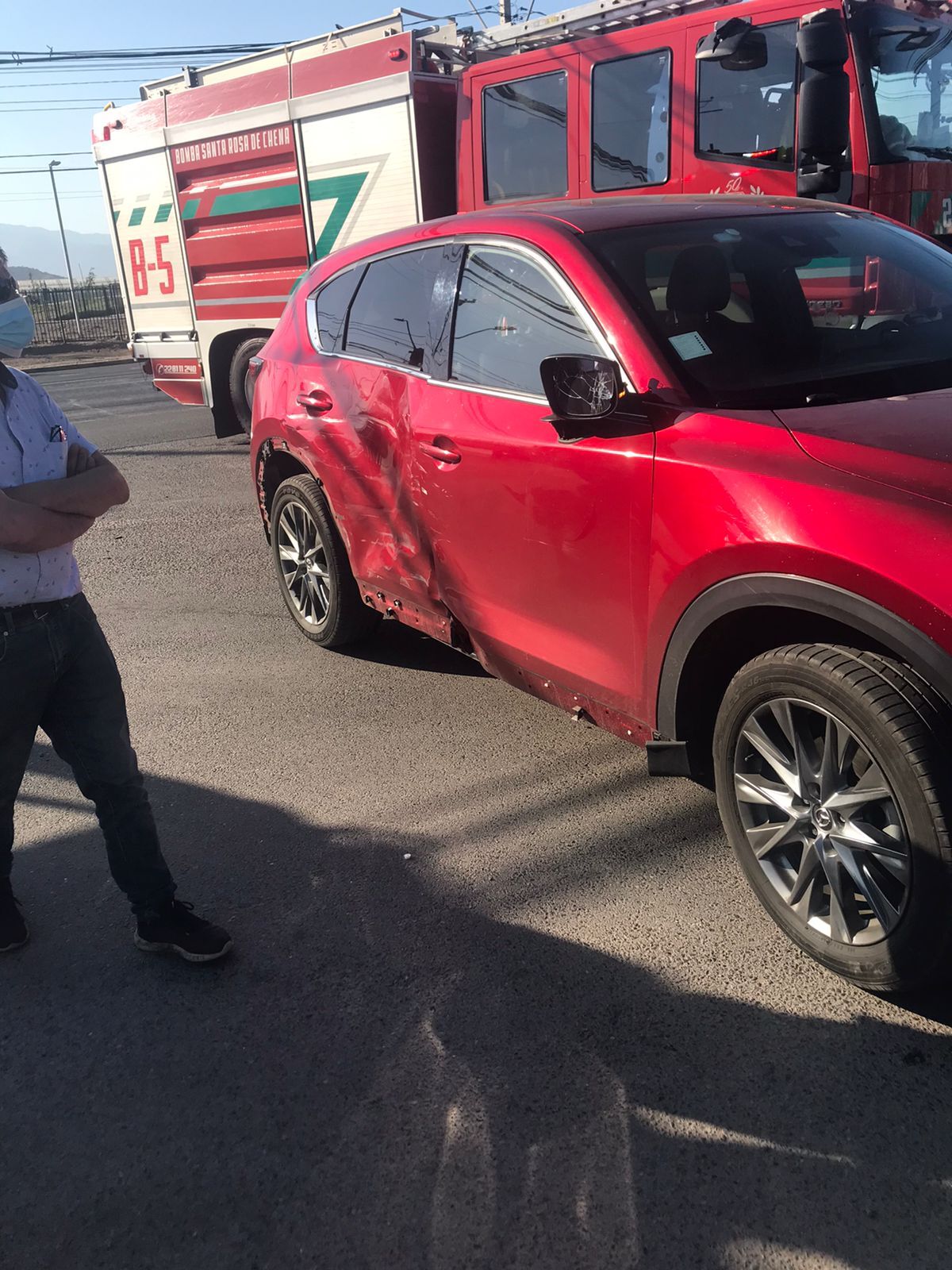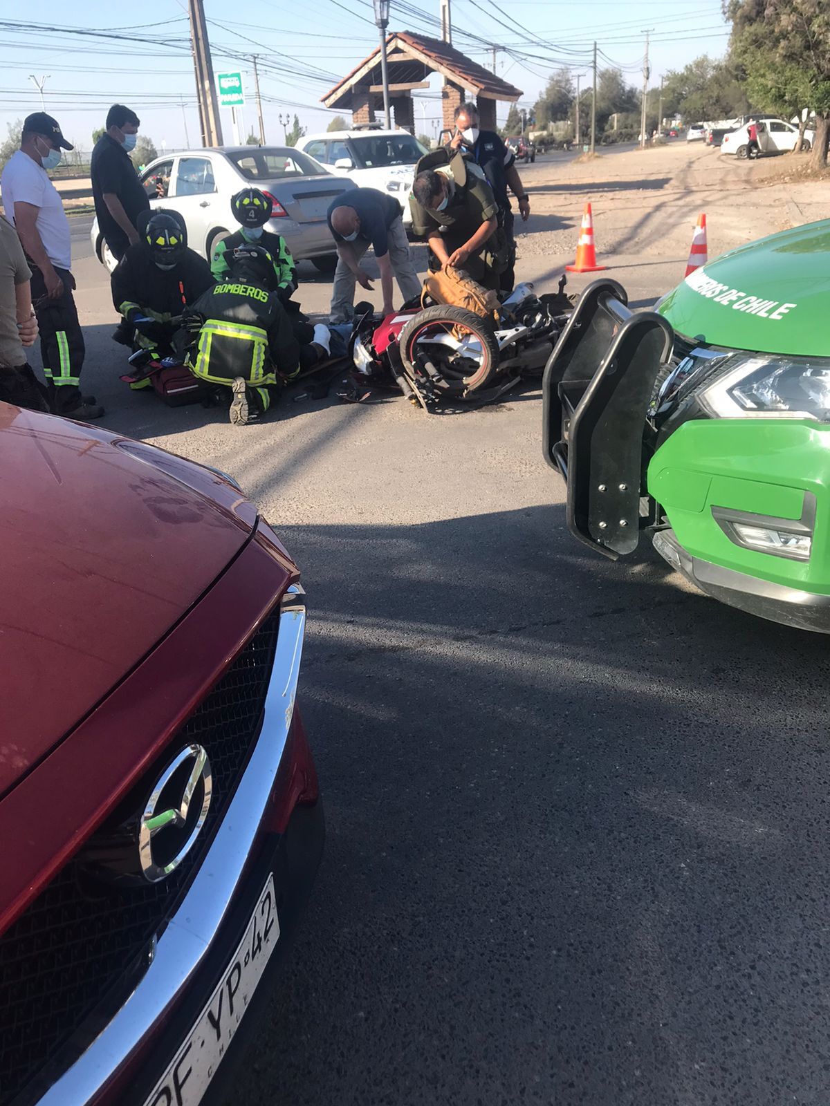“Lamentablemente un motorista nos adelantó por el lado derecho, lo que provocó este accidente, que favorablemente nadie está herido de ningún tipo de gravedad, sino que con rasguños del caballero que iba en la moto sin protección”, describió Santibáñez.