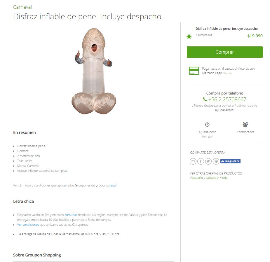 Esta edición 2018 no es la excepción y varios usuarios compartieron en Twitter, Facebook e Instagram un inusual disfraz inflable de un pene, el que está siendo ofertado por la empresa Groupon a $19.990.