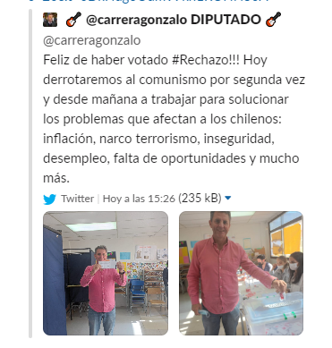 Efectivamente publiqué y bajé de mis RRSS el voto. Fue un error y pagaré la multa. Me hago cargo de mis errores.— 🎸 @carreragonzalo DIPUTADO 🎸 (@carreragonzalo) September 4, 2022