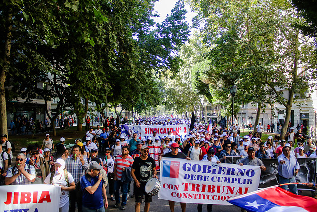 Esta mañana de viernes, los trabajadores de la Industria Pesquera realizaron una masiva marcha en el centro de Santiago, con el objetivo de demostrar su rechazo al veto de la ley de la jibia.