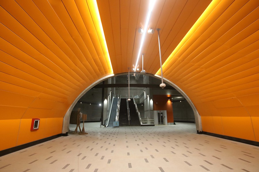 La nueva ruta de Metro de Santiago se inaugura con 10 estaciones que presentan trabajos inconclusos. Un detalle que ha pasado inadvertido y que tiene su punto crítico en la combinación con Línea 5, donde la entrada por Bandera con Catedral obligará a los usuarios a pasar bajo la construcción.