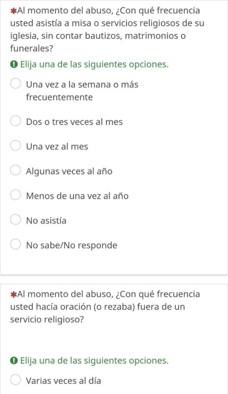 Luego de ver la encuesta, la Red de Sobrevivientes de Abusos Eclesiásticos manifestó su molestia y cuestionó la forma en que se aplicaron las preguntas. Recomendaron no contestarla por considerar que revictimiza a los sobrevivientes.