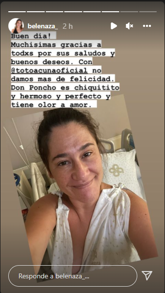 "Buen día! Muchísimas gracias a todxs por sus saludos y buenos deseos. Con Toto no damos más de felicidad. Don Poncho es chiquitito y hermoso y perfecto y tiene olor a amor", expresó en Instagram stories.