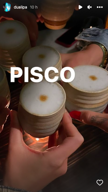 Y horas después de finalizar el show, la artista británica subió una fotografía a sus historias de Instagram con un vaso de pisco sour, según se puede apreciar, donde escribió "pisco".