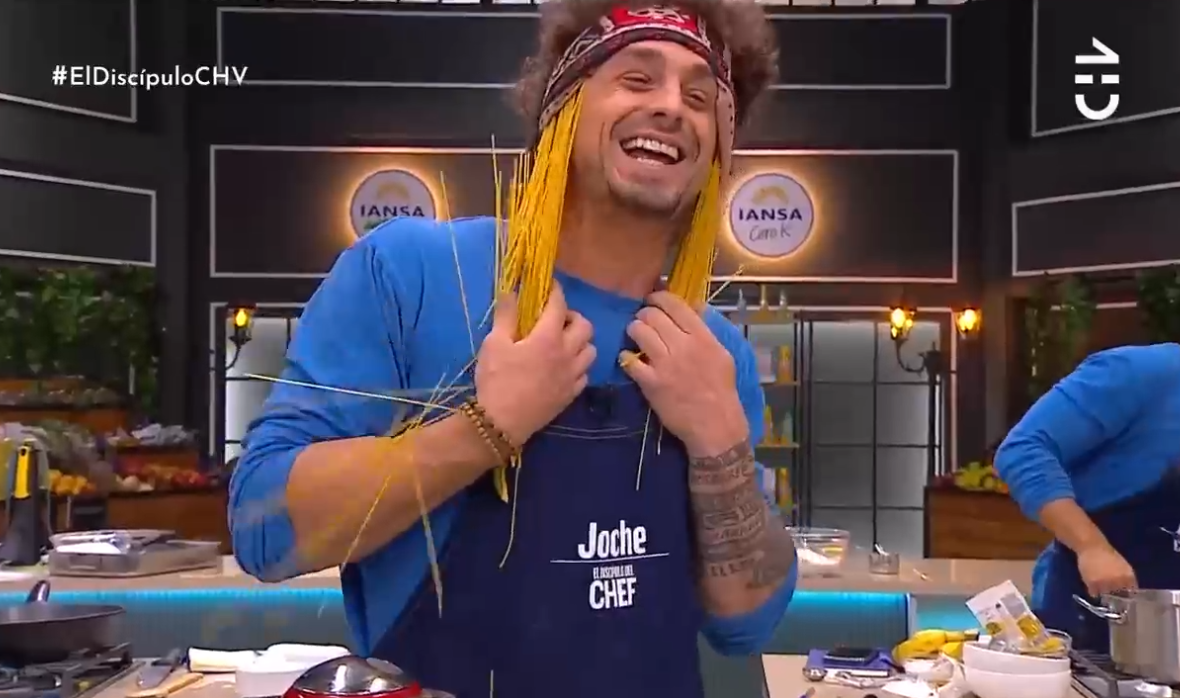"En honor a la Princesa Alba, hoy viene el Princeso Albo", comentó Joche, quien se puso tallarines en la cabeza haciendo alusión al platinado pelo de la cantante nacional.