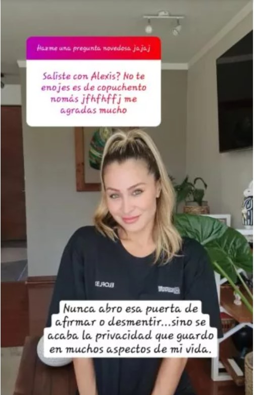 Ante ello, la modelo entregó una enigmática respuesta: "Nunca abro esa puerta de afirmar o desmentir, sino, se acaba la privacidad que guardo en muchos aspectos de mi vida".