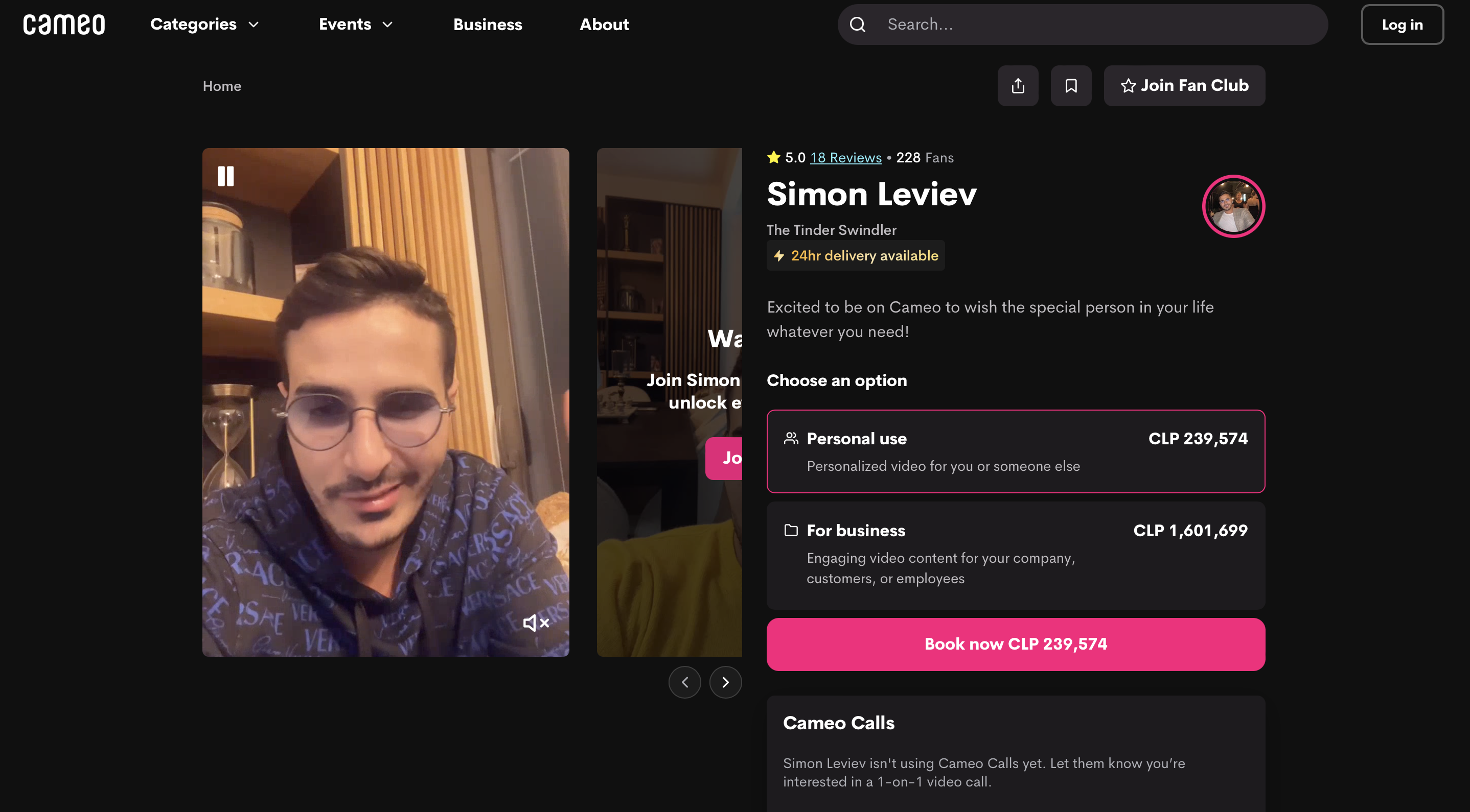 Los videos de saludo de Simon Leviev se entregan 24 horas después del pago de 160 mil pesos chilenos.