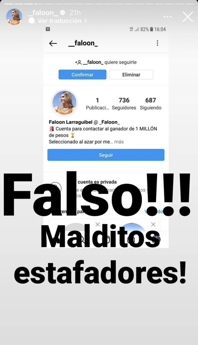 Una denuncia de suplantación de identidad realizó Faloon Larraguibel, quien expuso a cuentas de redes sociales que se están haciendo pasar por ella.