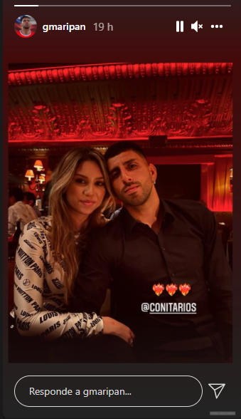 A través de stories, Maripán publicó una imagen de ambos dentro de un restaurante ubicado en Mónaco, la que acompañó con emojis de corazones en llamas.