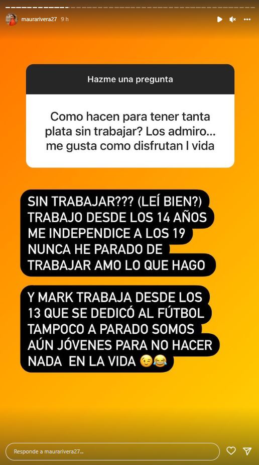 Junto a esto, agregó “Mark trabaja desde los 13, se dedicó al fútbol. Tampoco ha parado. Somos aún jóvenes para no hacer nada en la vida”.