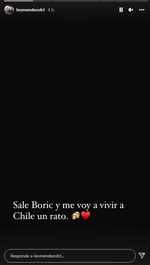 Con un fondo negro y un escrito de no más de una línea, el influencer señaló en la red social que "sale Boric y me voy a vivir a Chile un rato", frase a la que le añadió un emoji de cerveza y un corazón rojo.
