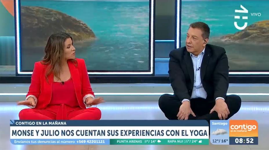Los conductores de Contigo en la Mañana de Chilevisión, comenzaron contando sus experiencias con el yoga, luego que la animadora dijera que empezó a hacer clases con la instructora Fresia Soltof, periodista de CNN Chile.