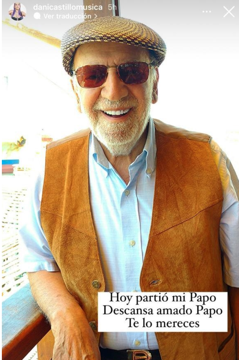 A sus 95 años, el papá de la cantante nacional falleció por complicaciones en su salud acarreadas luego de contraer el virus. Una situación que fue lamentada por la artista en redes sociales, luego de haber pedido a sus seguidores que se unieran a una cadena oración por su "Papo".