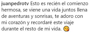 “Esto es recién el comienzo hermosa, se viene una vida juntos llena de aventuras y sonrisas, te adoro con mi corazón y recordaré este viaje durante el resto de mi vida”, sentenció el uruguayo.