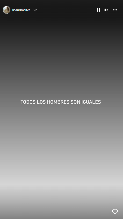 En un primer mensaje, la ex chica reality publicó un emoji de corazón roto junto a un fondo negro, mientras que en una segunda storie escribió que "todos los hombres son iguales".