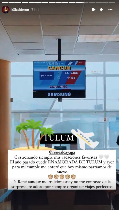 Finalmente, la influencer dio a conocer que recibió un regalo sorpresa: Un viaje a Cancún. En redes compartió una captura de su vuelo, misma imagen que fue publicada por su pololo, es decir, ambos disfrutarán de este paradisíaco destino para continuar celebrando esta especial fecha.