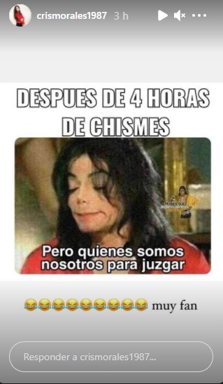 Aquí, Morales subió una historia en la que afirmó que “Una hembra no llora”, haciendo referencia a la canción del grupo de música La Sonora Master.