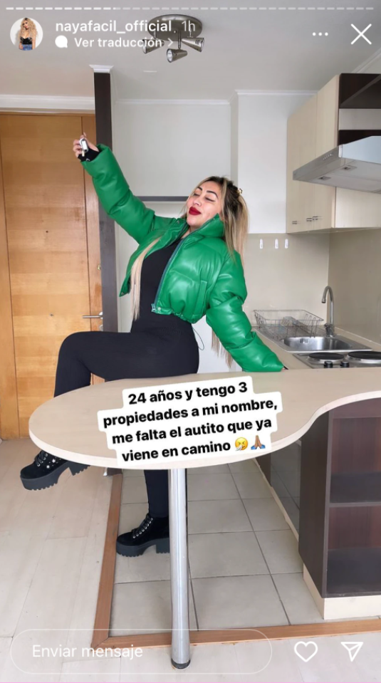 "24 años y tengo tres propiedades a mi nombre, me falta el autito que ya viene en camino", escribió en una de las publicaciones en las que aparece dentro del departamento que recién adquirió.