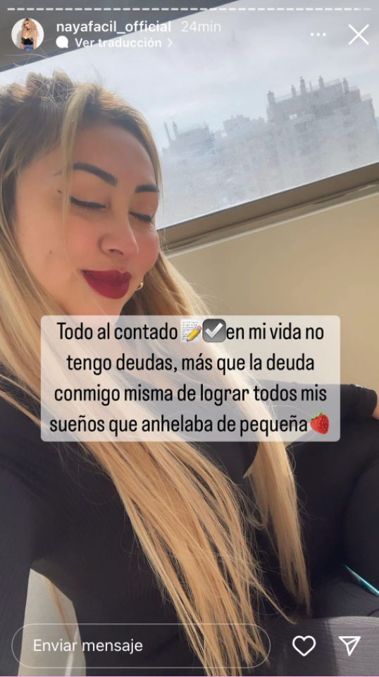 En la otra publicación, Nayadeth —su nombre real— contó que "todo fue al contado". "En mi vida no tengo deudas, más que la deuda conmigo misma de lograr todos mis sueños que anhelada de pequeña", agregó.