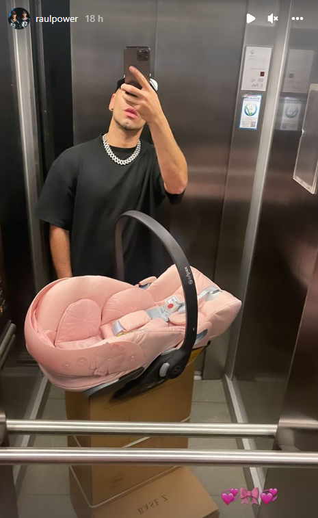 Precisamente fue este último quien publicó una sospechosa foto en sus stories de Instagram, donde apareció con una silla de guagua de color rosado dentro de un ascensor.