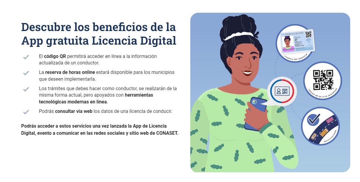 Adicionalmente a esto, la Comisión Nacional de Seguridad de Tránsito (Conaset) está trabajando en lo que será la nueva licencia de conducir digital, la que se podrá descargar a través del celular.