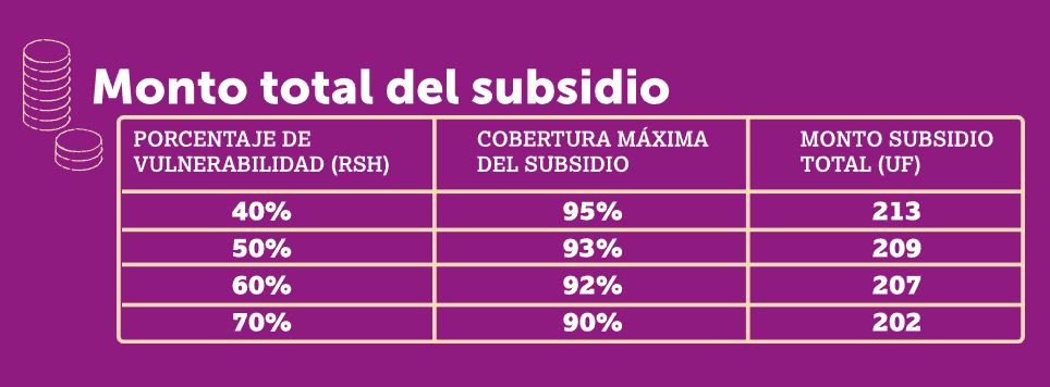 Para calcular cuál sería el aporte del subsidio de acuerdo al tramo del Registro Social de Hogares (RSH) en el que está el postulante, consulta la siguiente tabla: