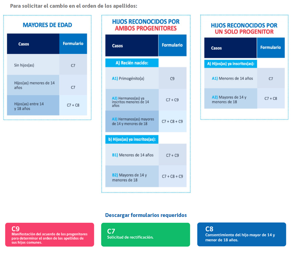 - Presentar el Formulario de Acuerdo (C-9) firmado por ambos progenitores que determine el orden de apellidos elegido.