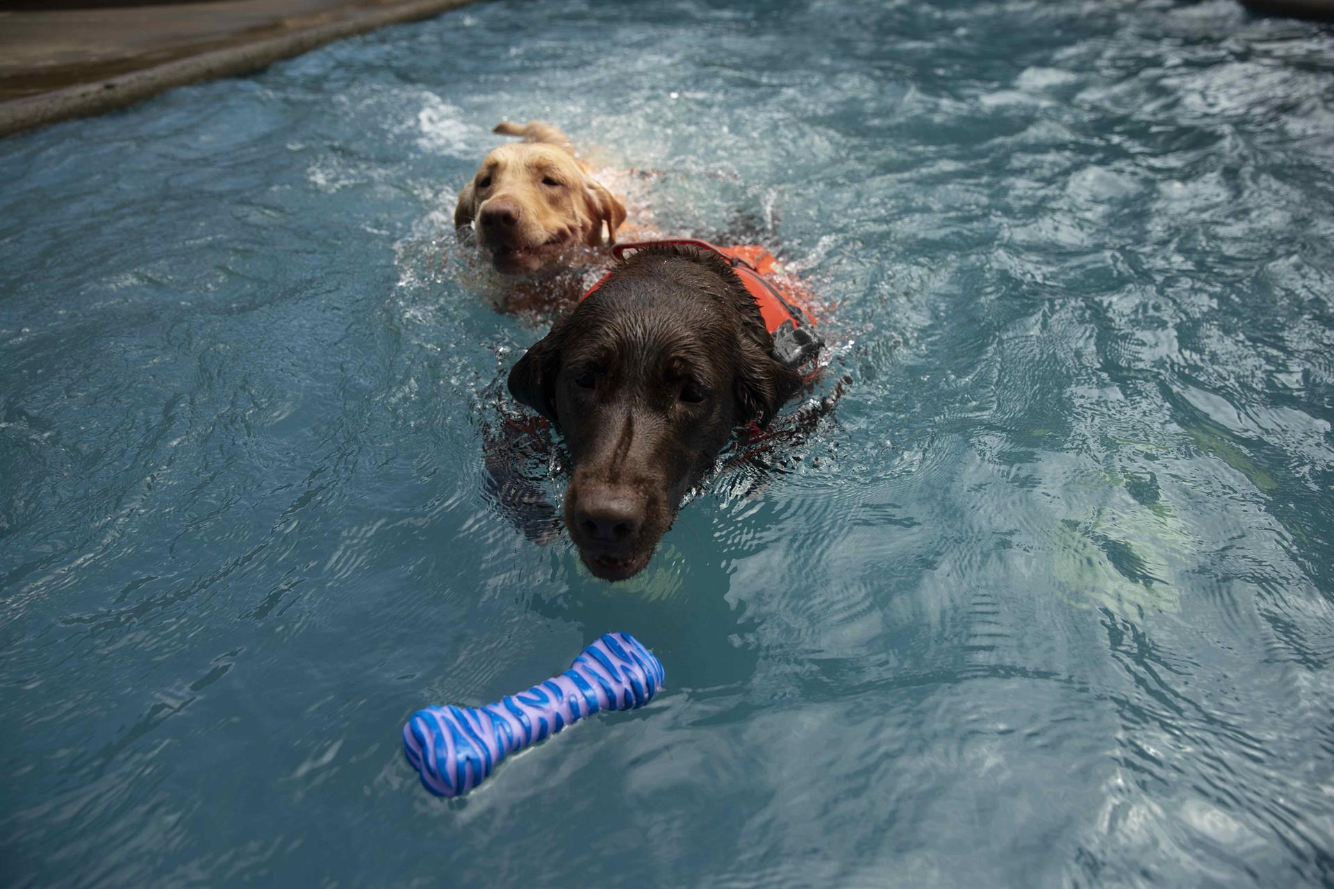 La hidroterapia consiste en que el entrenador se zambulle en una piscina junto con el can y ambos empiezan a hacer ejercicios de manera estática, de relajación y de flotación, puntualizó.