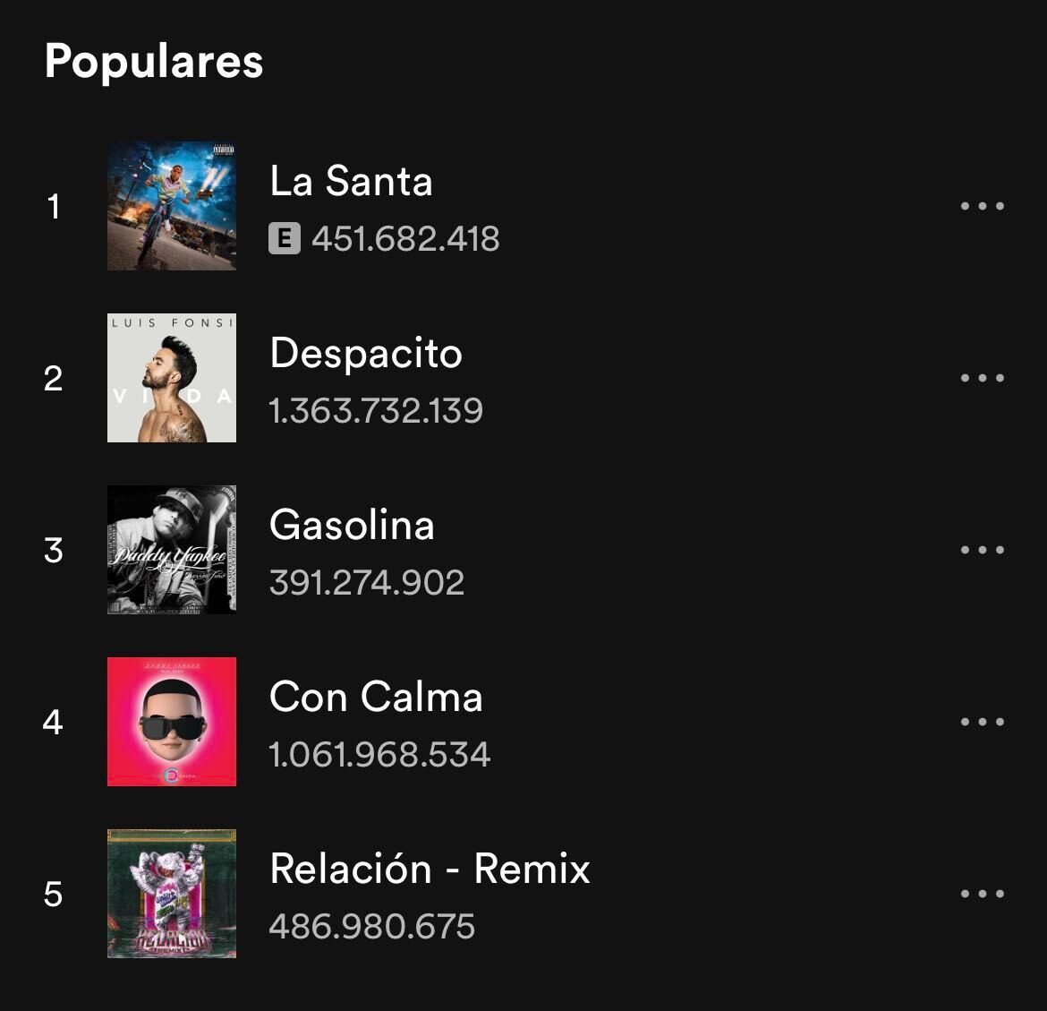 En Spotify se puede encontrar toda su discografía, mientras que las cinco canciones más escuchadas son: