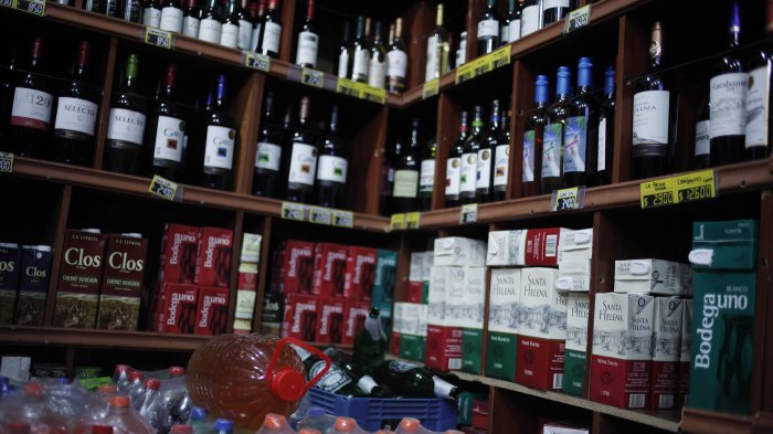 Larga fila en botillería para comprar alcohol a horas de inicio de cuarentena total