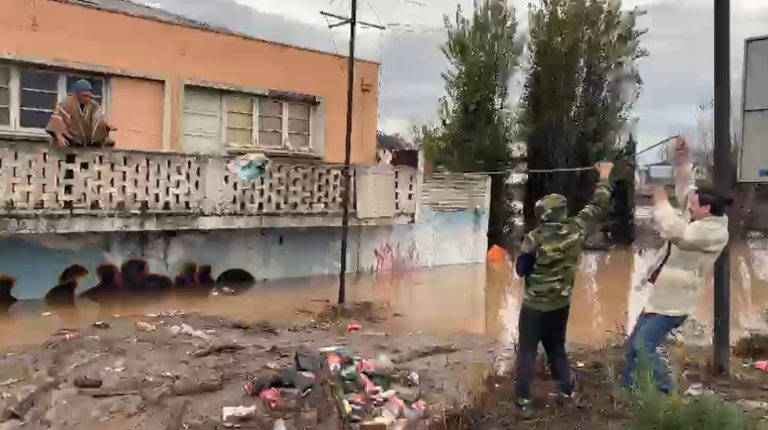 Extrema maniobra para recibir víveres: Familia quedó aislada tras desborde del Río Mapocho en Pudahuel