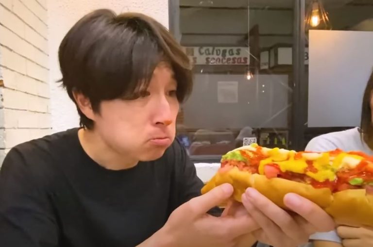 "¡Mmm la hue... buena!": Youtuber japonés probó por primera vez el completo en Chile y el ají lo hizo sufrir