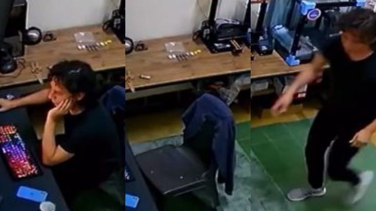 "Me volvió a dar escalofríos": Cámara captó inusual caída de objetos mientras joven estaba solo en su oficina