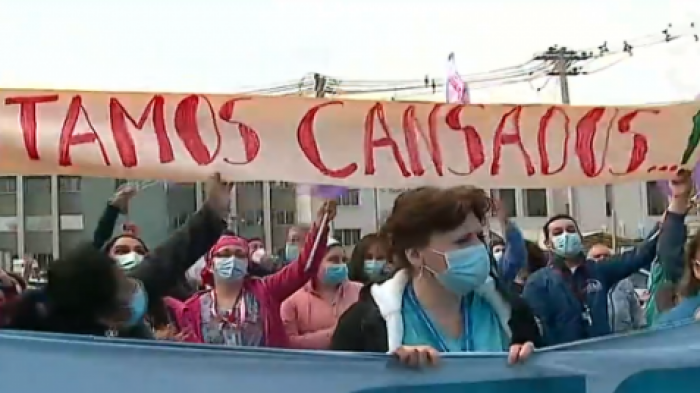 Primera línea del Hospital Barros Luco protesta por falta de descanso: No han parado en un año y medio
