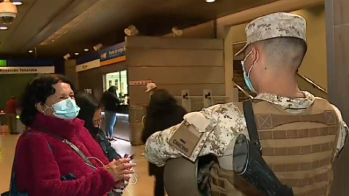 Militares realizan fiscalización en metro Macul por cuarentena en La Florida
