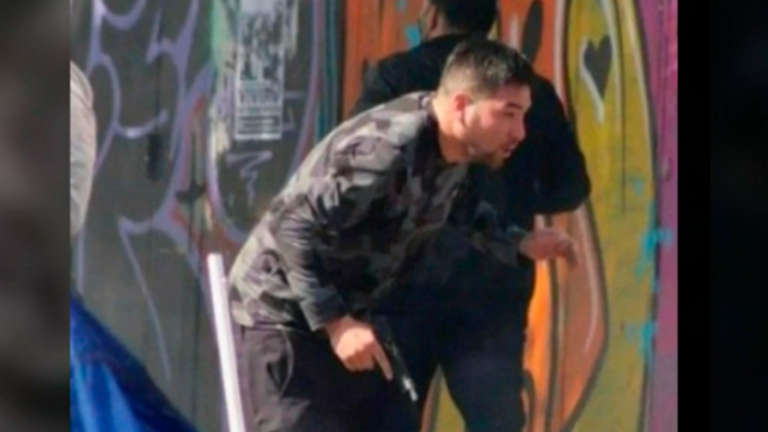 Alegan que le roban los toldos: Captan a comerciantes parapetarse con armas de fuego para disparar a manifestantes