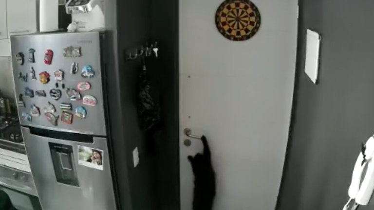 ¡Increíble hazaña! Video captó a gato abriendo la puerta de departamento a sus dueños para rescatarlos