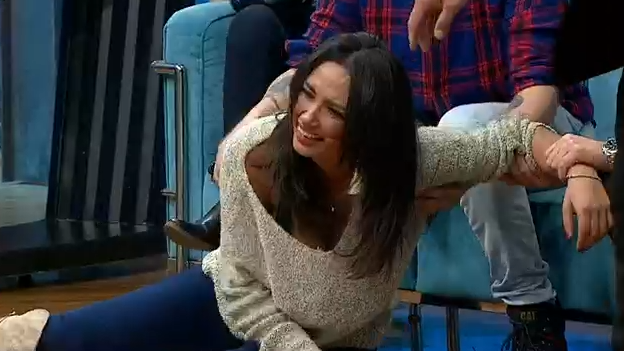 Pamela Díaz y su graciosa caída junto a los dobles de Pimpinela