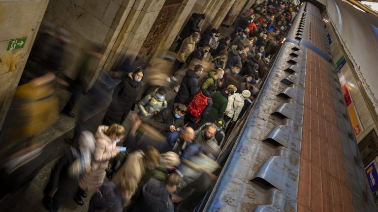 Impactantes imágenes: Miles de ucranianos atiborran la estación de trenes de Kiev para salir de la capital