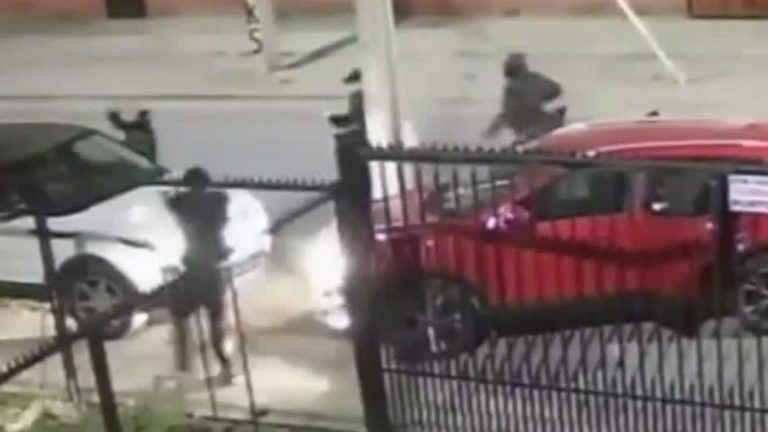 ¡Insólitas imágenes! Un hombre se subió arriba de un camión y comenzó a golpear al conductor con una cadena