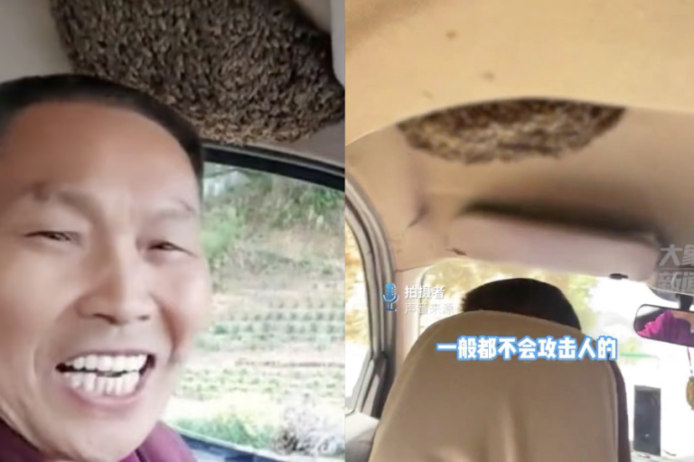 "Una leyenda": Hombre causa sensación en China al viralizarse conduciendo con una colmena de abejas en su auto