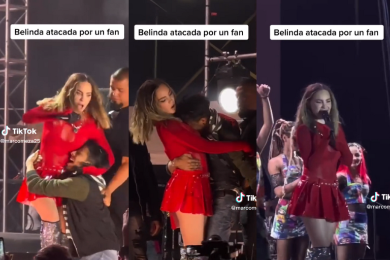 "El susto que me llevé": Belinda quedó lastimada tras show luego que fan se subiera al escenario para abrazarla