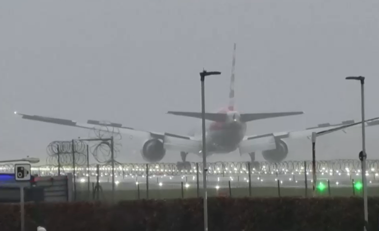 "Rebotó" al aterrizar: Captan accidentada maniobra de avión por tormenta en Londres