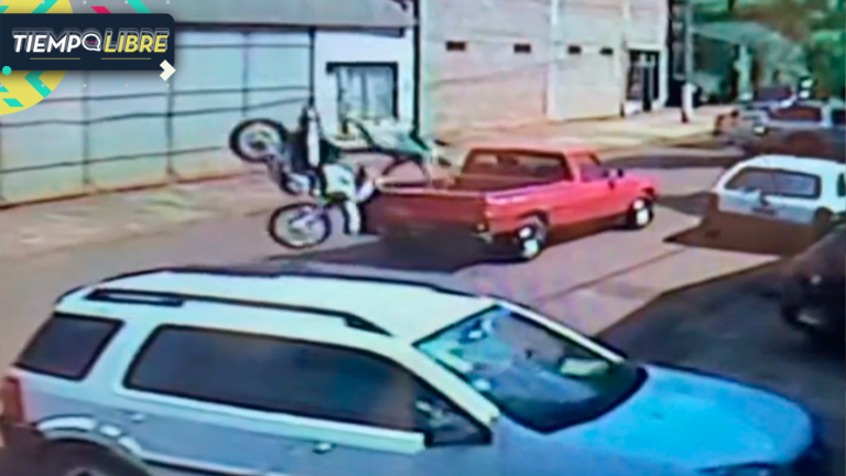 Sujeto hacía piruetas con su moto y terminó dentro del pick up de una camioneta