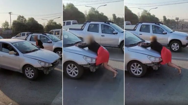 "¿¡Qué estay haciendo, hombre!?": Graban insólito altercado en que conductor empujó a mujer por 20 metros