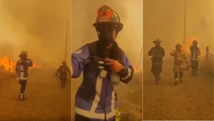 "¡El carro! Conch...": Graban a bomberos escapando tras ser acorralados por las llamas en incendio en Yumbel