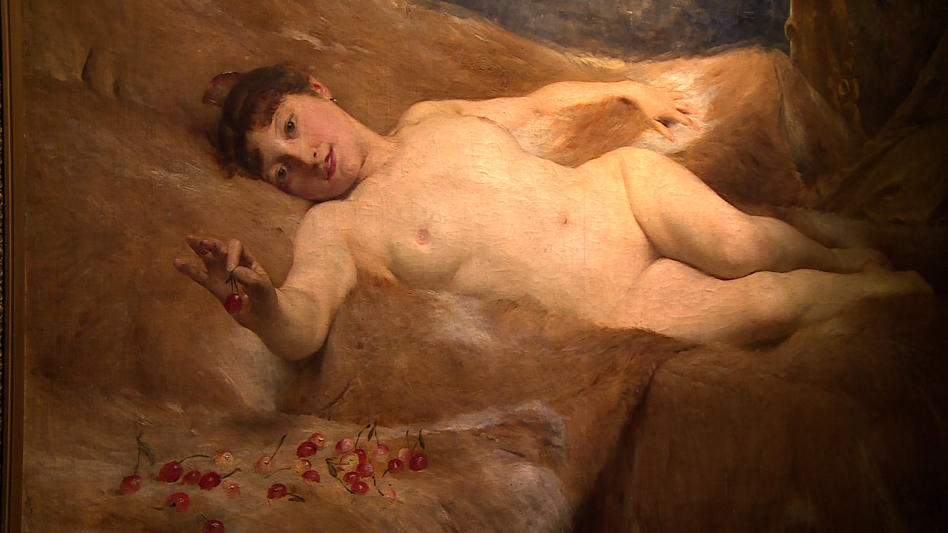 8. La Ninfa de las Cerezas, de Alfredo Valenzuela Puelma, cosechó premios en Europa pero en Chile casó causó escándalo ya que la mujer desnuda mira directamente a los ojos del observador.