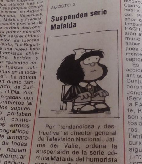 Posteriormente, con el golpe militar, las cosas cambiaron. Y el 2 de agosto de 1975 la Revista Análisis informaba la decisión de Jaime del Valle, director general de Televisión Nacional, de cortar la serie Mafalda "después de haber recibido numerosas cartas y reclamos telefónicos de los televidentes".