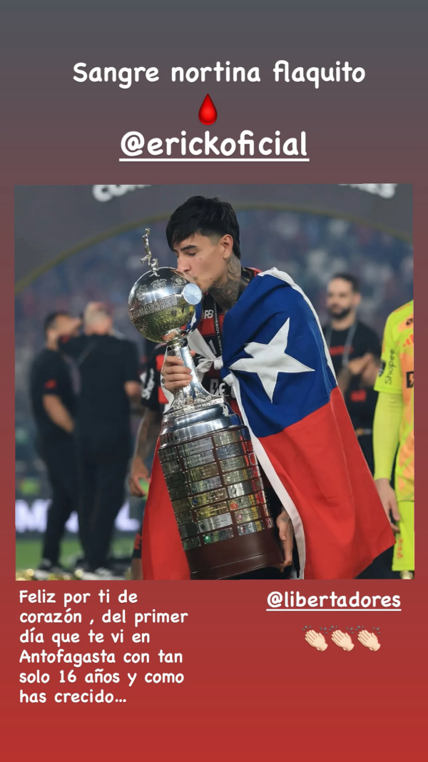 Maravilla incluyó una foto de Pulgar levantando la Copa Libertadores, la que volvió a ganar tras consagrarse el 2022 con el propio cuadro brasileño.