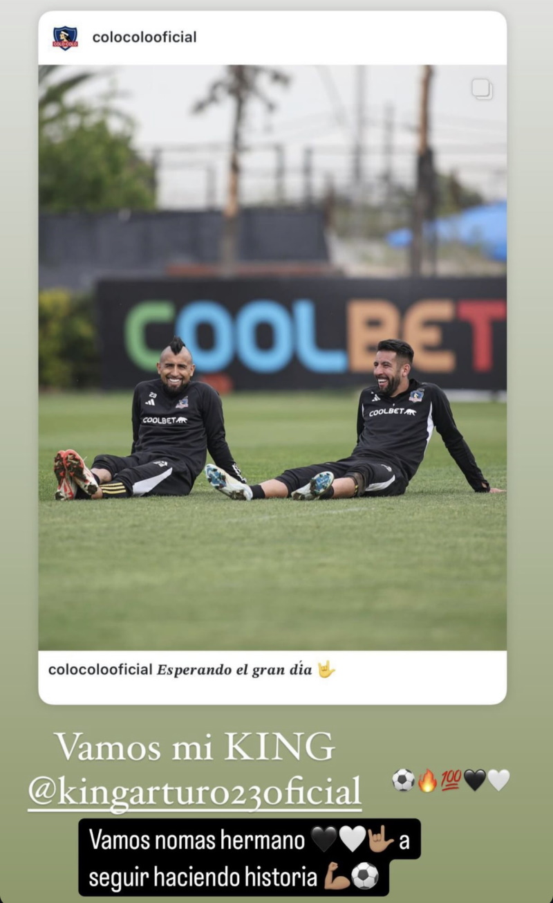 El volante no quedó indiferente y le contestó al oriundo de Buin. "Vamos hermano. A seguir haciendo historia", señaló en una historia.